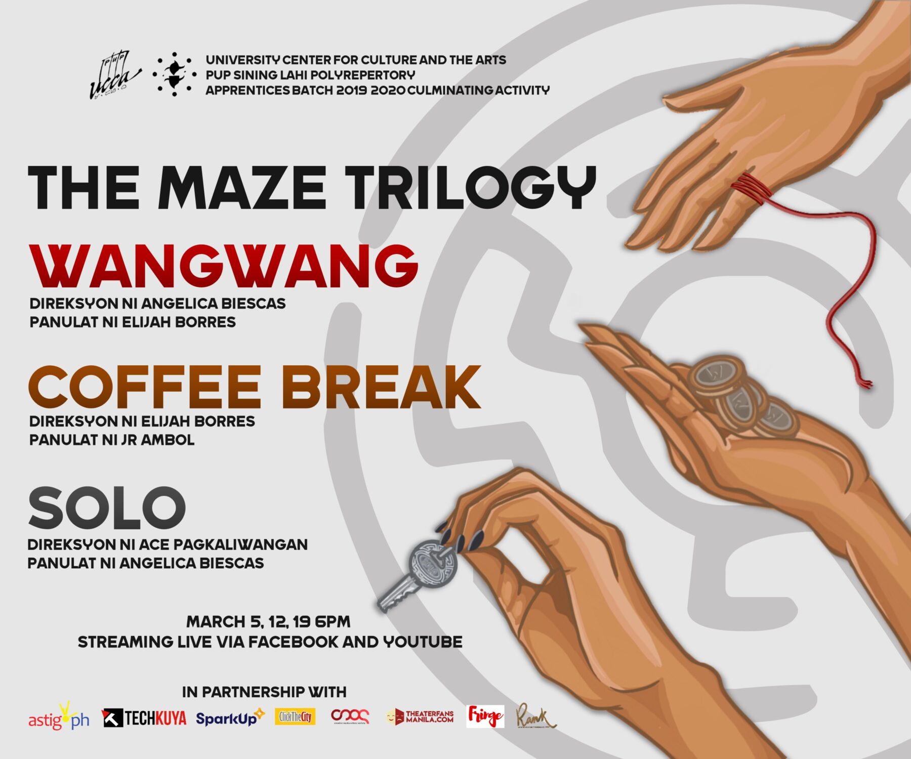 MANILA, Philippines — In its 39-year tradition, Sining-Lahi Polyrepertory, the resident student theater organization of the Polytechnic University of the Philippines, under the University Center for Culture and the Arts, furthers its mission to train and produce young artists amid the continuing pandemic. This year, the Apprentices Batch 2019-2020 will culminate through a trilogy production, The Maze Trilogy.