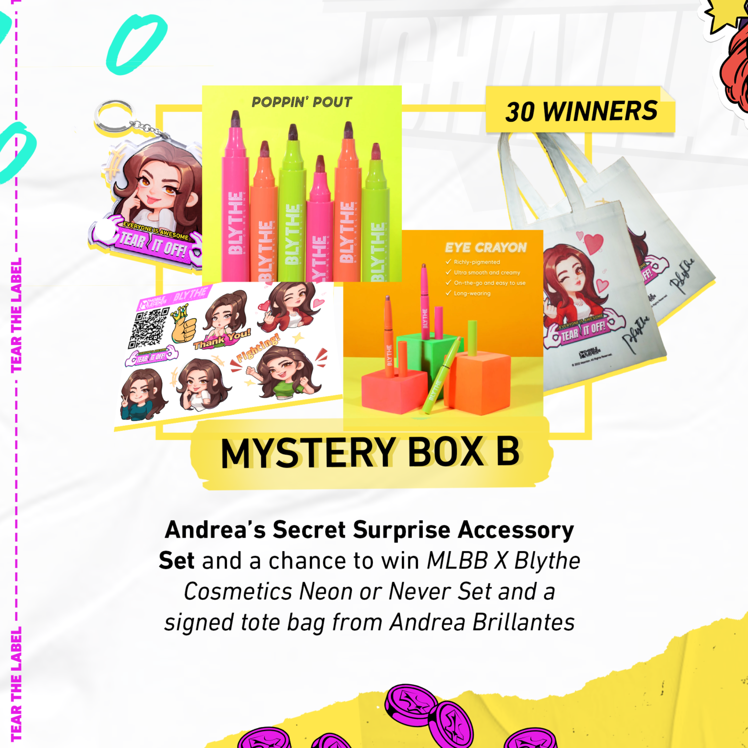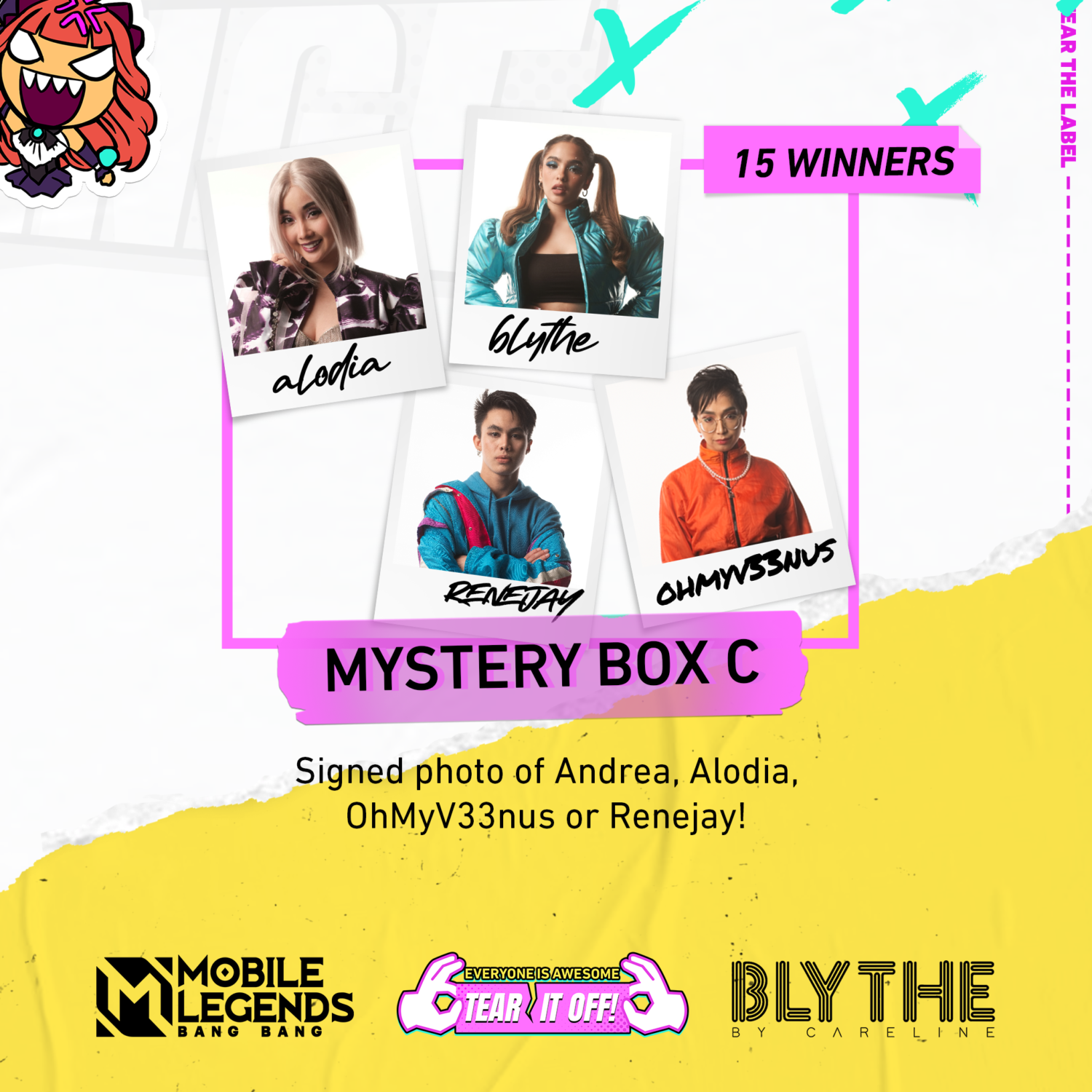 From March 7-15, participate in the #TearItOffChallenge by sharing a story or snippet on Facebook on biases or stereotypical incidents faced. Lucky entrants can take home blind boxes containing MLBB-branded shirts and pullovers, Andrea’s Secret Surprise Accessory Set, or photo cards with signatures from Andrea, OhmyV33nus, Alodia, and Renejay.