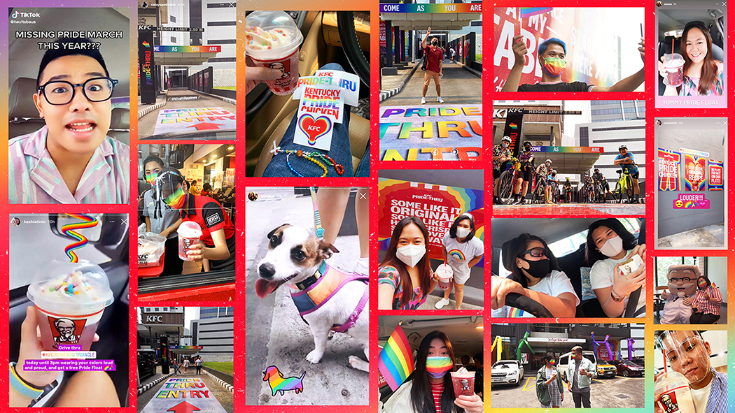 But with no large physical gatherings allowed, KFC instead turned its drive-thru branch into a safe space for LGBTQIA+ members and allies so they could go out and be heard. Posters at the venue showed how “Love is the Original Recipe,” and called for people to “Drive out the hate.”