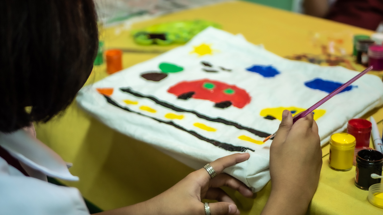 Participating students paint a slice of everyday life on canvas bag. Images courtesy of KROMA Entertainment.