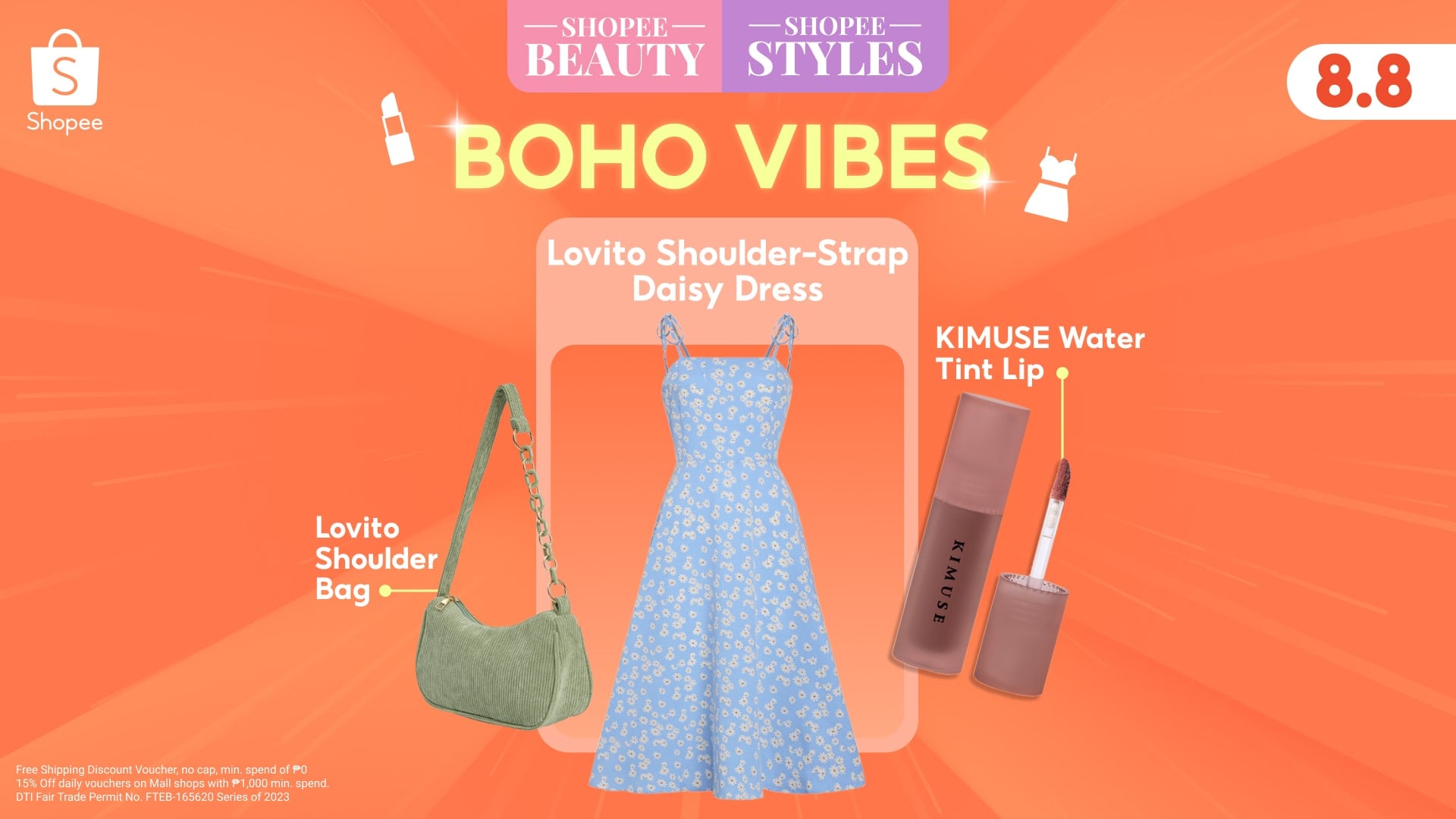 Explore these standout fashion and beauty selections to capture the essence of Boho Vibes: Lovito Shoulder Bag, Lovito Shoulder-Strap Daisy Dress, and KIMUSE Water Tint Lip