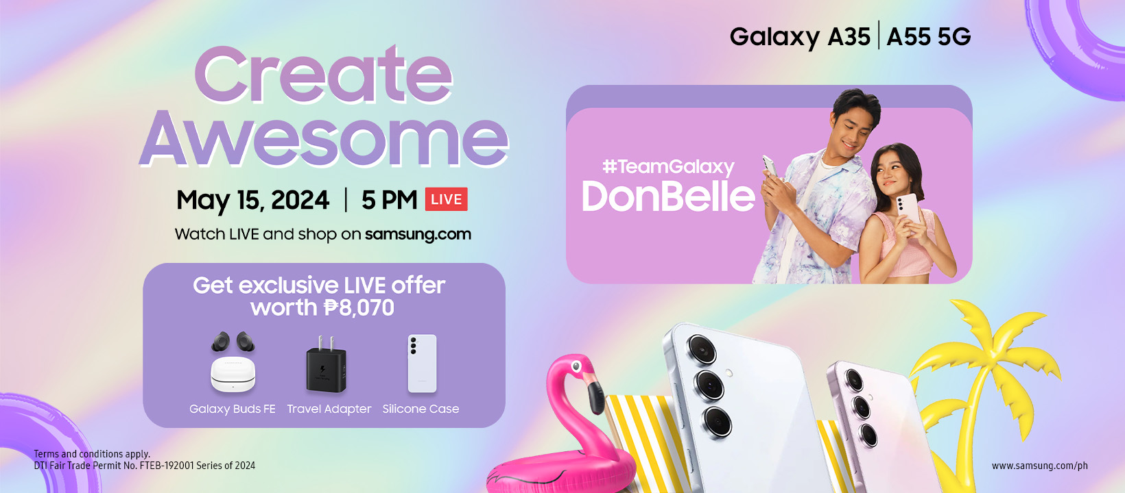 MANILA, Philippines—In a recent announcement, #TeamGalaxy ambassadors for A Series, Donny Pangilinan and Belle Mariano, are going live on Samsung PH’s Facebook page on May 15, 2024, 5 PM to share ways to create an awesome summer with the Galaxy A55 5G and A35 5G.