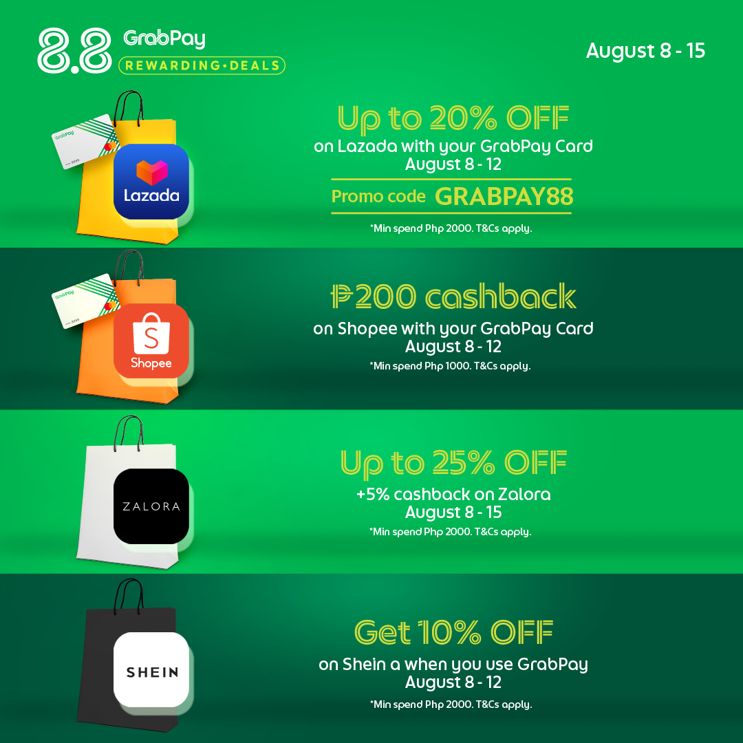 Get the most out of your 8.8 transactions and bag satisfying rewards, discounts and spendbacks with your GrabPay wallet and GrabPay Mastercard. For more information on GrabPay, you may visit https://www.grab.com/ph/blog/experience-grabpay-now/.