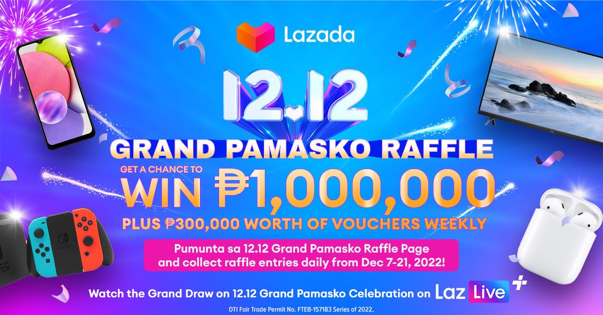 Gather ‘round with your family and friends and tune in on LazLive+ for Lazada’s 12.12 Grand Pamasko Celebration and get a chance to bring home up to P100,000 cash through Lazada Cart-o-Cash and be Lazada’s Grand Pamasko Millionaire.