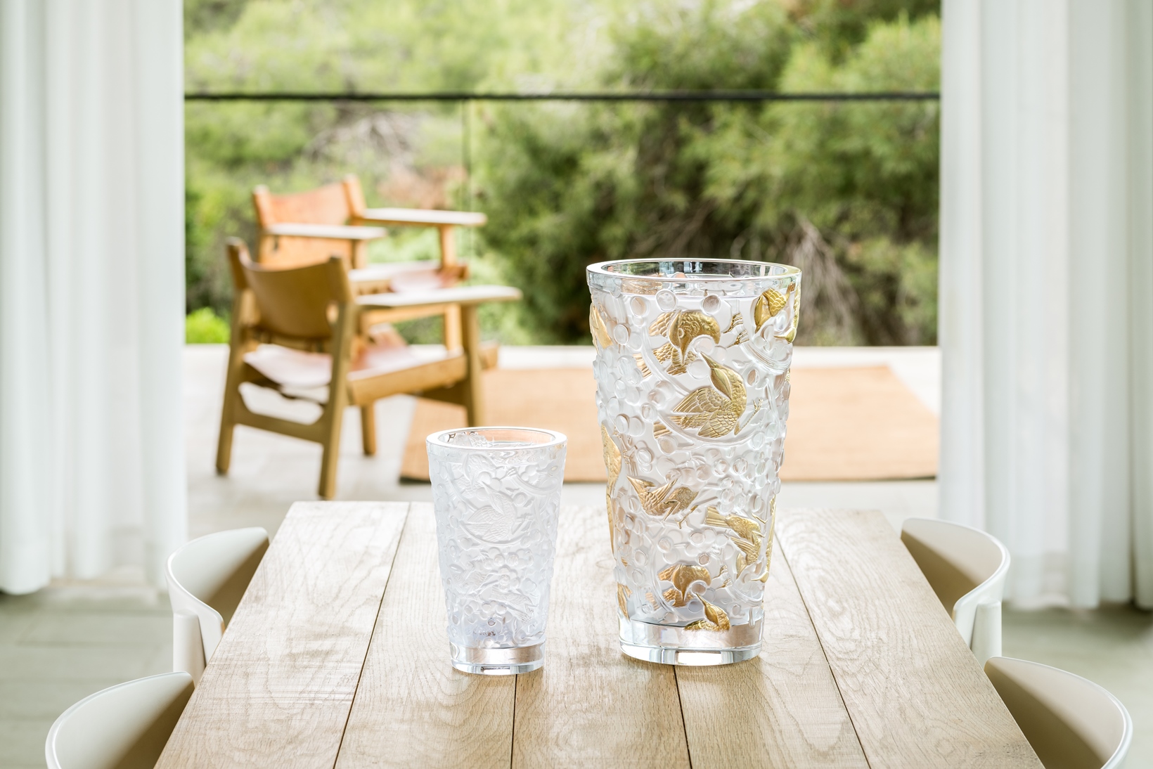 The Lalique Studio reinterprets this emblematic creation, in new expressions through vases. Blackbirds with finely chiseled plumage indulge in an abundance of sweet grapes while the vines create an exceptional rhythm throughout a perfectly balanced composition.