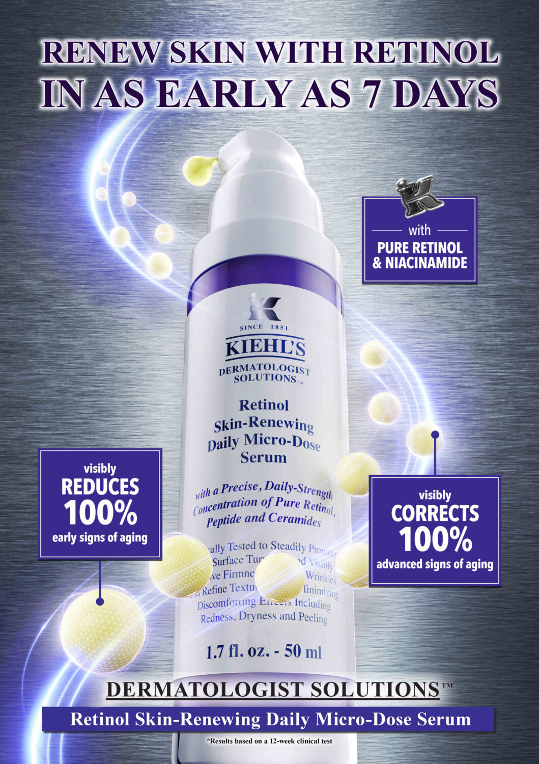 Heading into the new year, Kiehl’s is still motivated to educate younger consumers, help them maximize their skincare products, and ensure they have the best experience using retinol in their routine. With that being said, here are some ways to incorporate Kiehl’s Skin-Renewing Daily Micro-Dose Retinol Serum into your lifestyle and conquer the year with amazingly flawless skin: