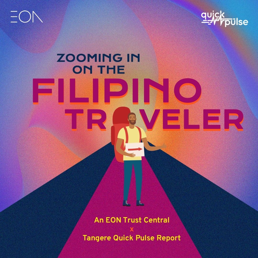 Quick Pulse: Zooming in on the Filipino Traveler is a study based on the insights gathered from a nationally representative sample of 5,000 Tangere app users. The respondents are mostly females aged 24 to 60 years old who come from the lower middle/low-income class. You may request a copy of the full report at info@eon.com.ph.