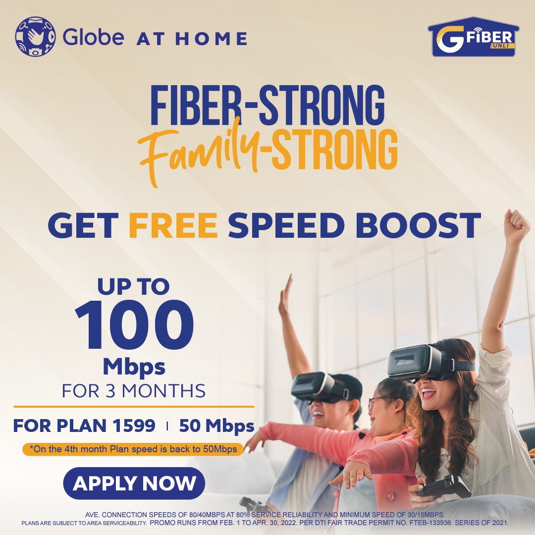 To enjoy fiber-fast connectivity at home now, visit https://www.globe.com.ph/broadband.html now!
