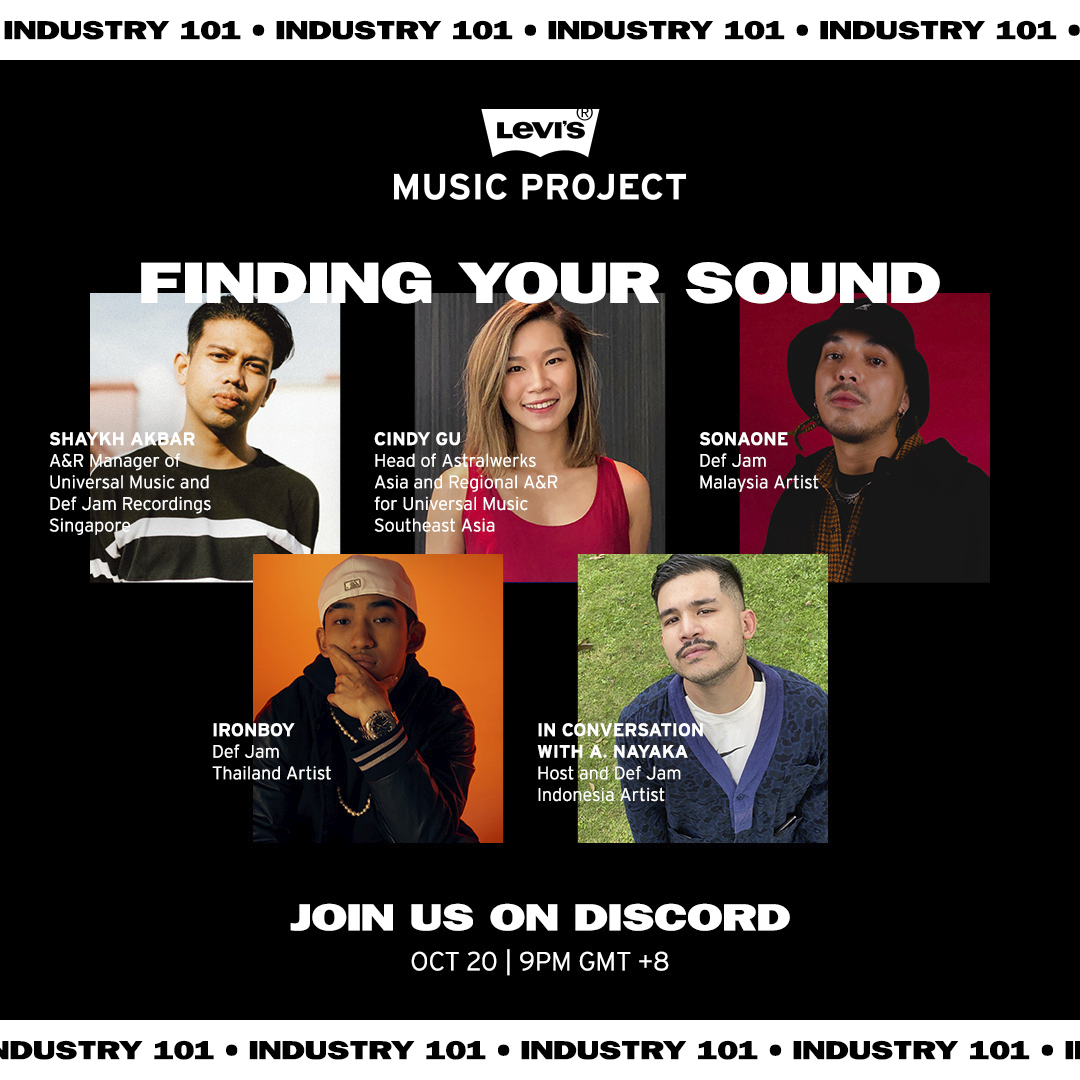 In line with Levi’s® mission to catalyse the music industry, INDUSTRY 101 which is a 45-minute, LIVE audio workshop on the Levi’s® Discord channel, will play host to prominent names from the music industry such as Enzo Valdez, Juan Karlos and more musicians from across South East Asia.
