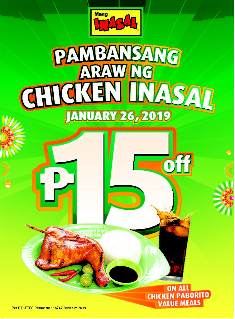 Satisfy your craving for Chicken Inasal! Join the celebration of Pambansang Araw ng Chicken Inasal at the Mang Inasal store nearest you!
