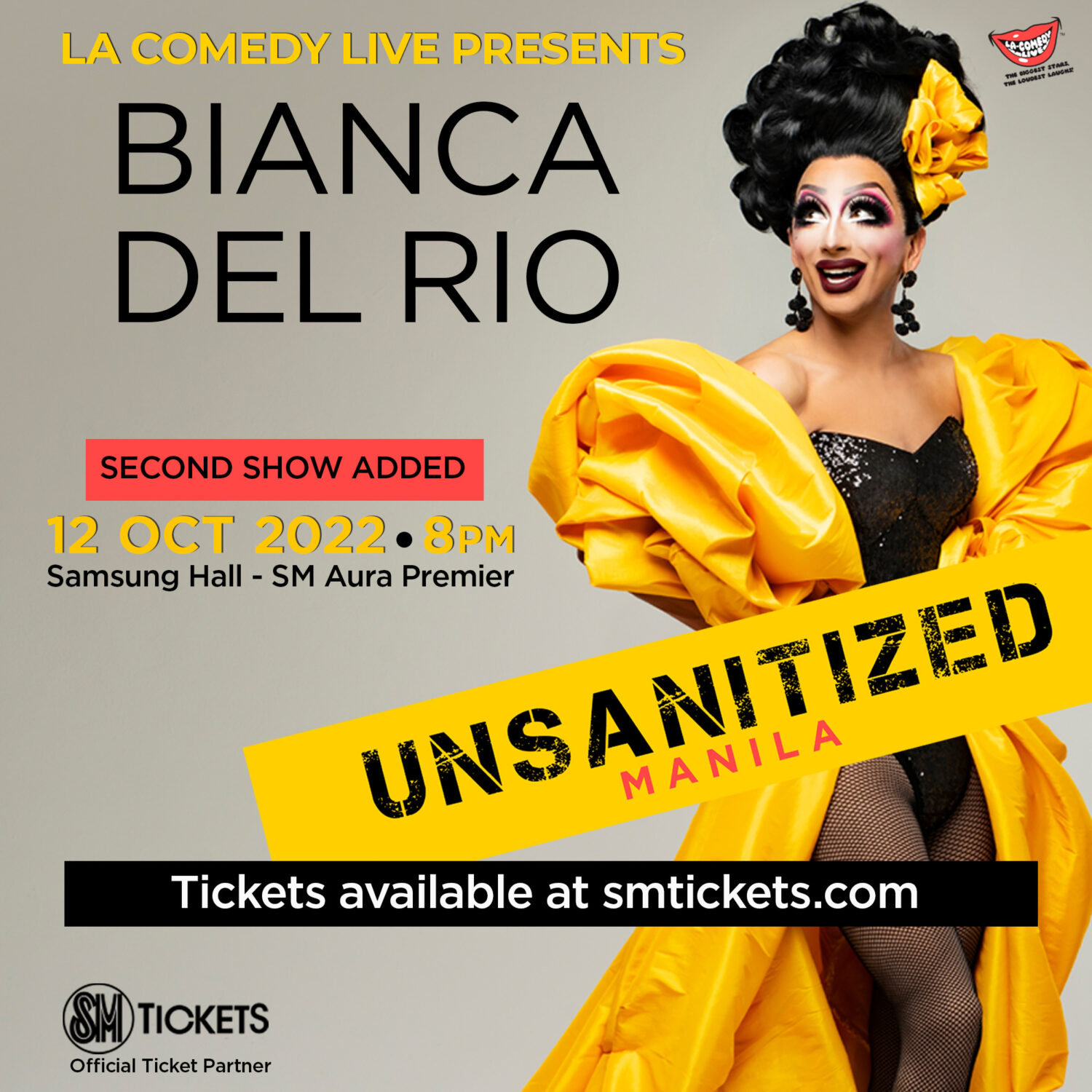 MANILA, Philippines—What do you know?! Due to unsurprising public demand, LA Comedy Live presents Bianca Del Rio: UNSANITIZED Manila gets a Day 2! Catch the second date of Del Rio’s widely-popular tour on October 12, 2022, 8 pm, at the Samsung Hall – SM Aura Premier.