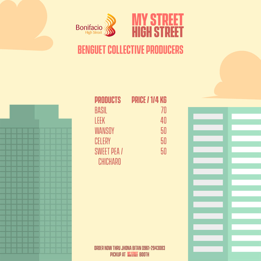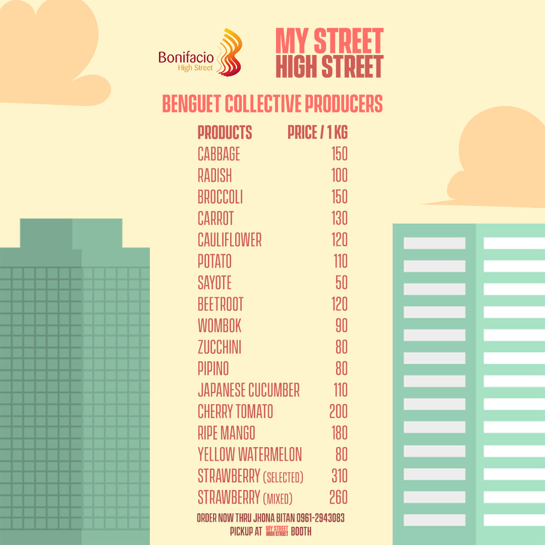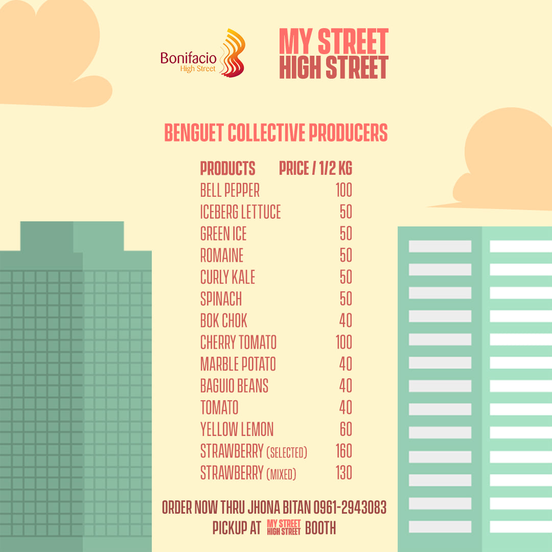 Score high quality Benguet staples at Bonifacio High Street through the My Street High Street initiative, with a wide selection of fruits and vegetables straight from the North.