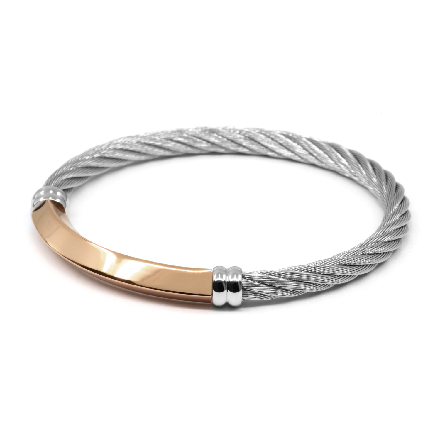 Better Half Bangle Rose Gold Decor, Stanless Steel Cable. Image courtesy Charriol
