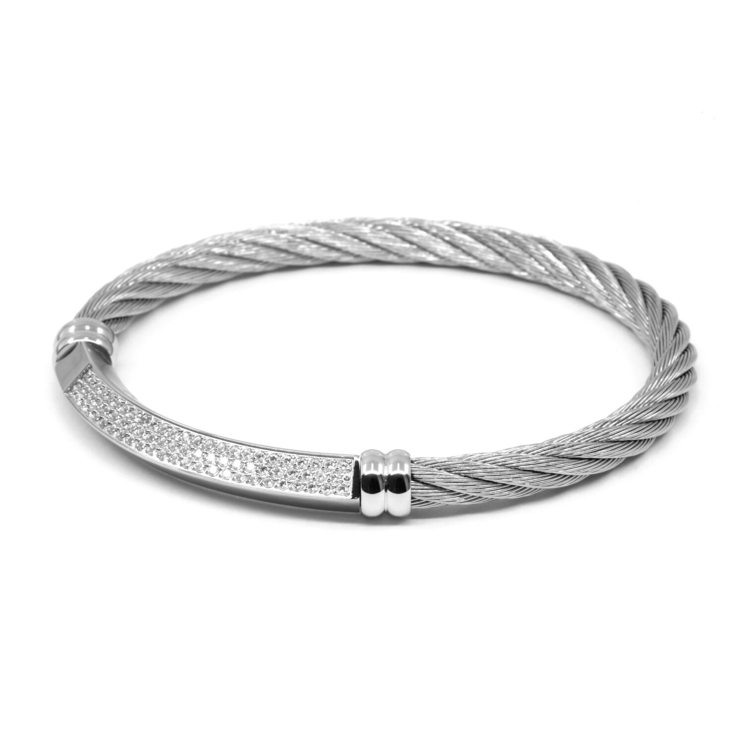 Better Half Bangle Stainless Steel Decor, CZ stones, Stanless Steel Cable. Image courtesy Charriol