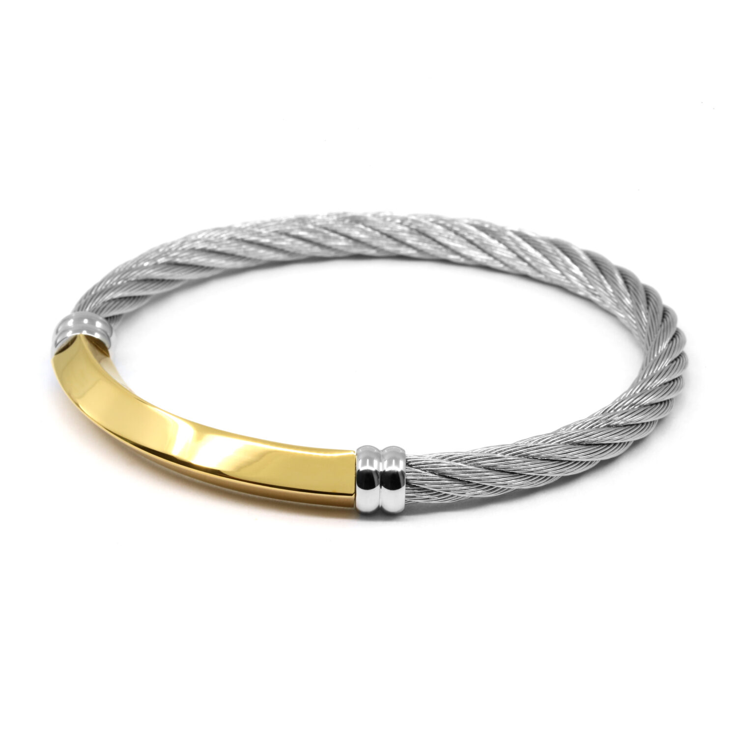 Better Half Bangle Stainless Steel Decor, Yellow Gold PVD Cable Image courtesy Charriol