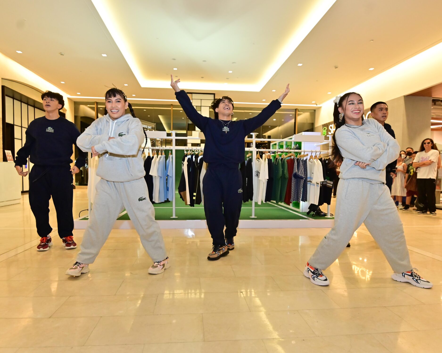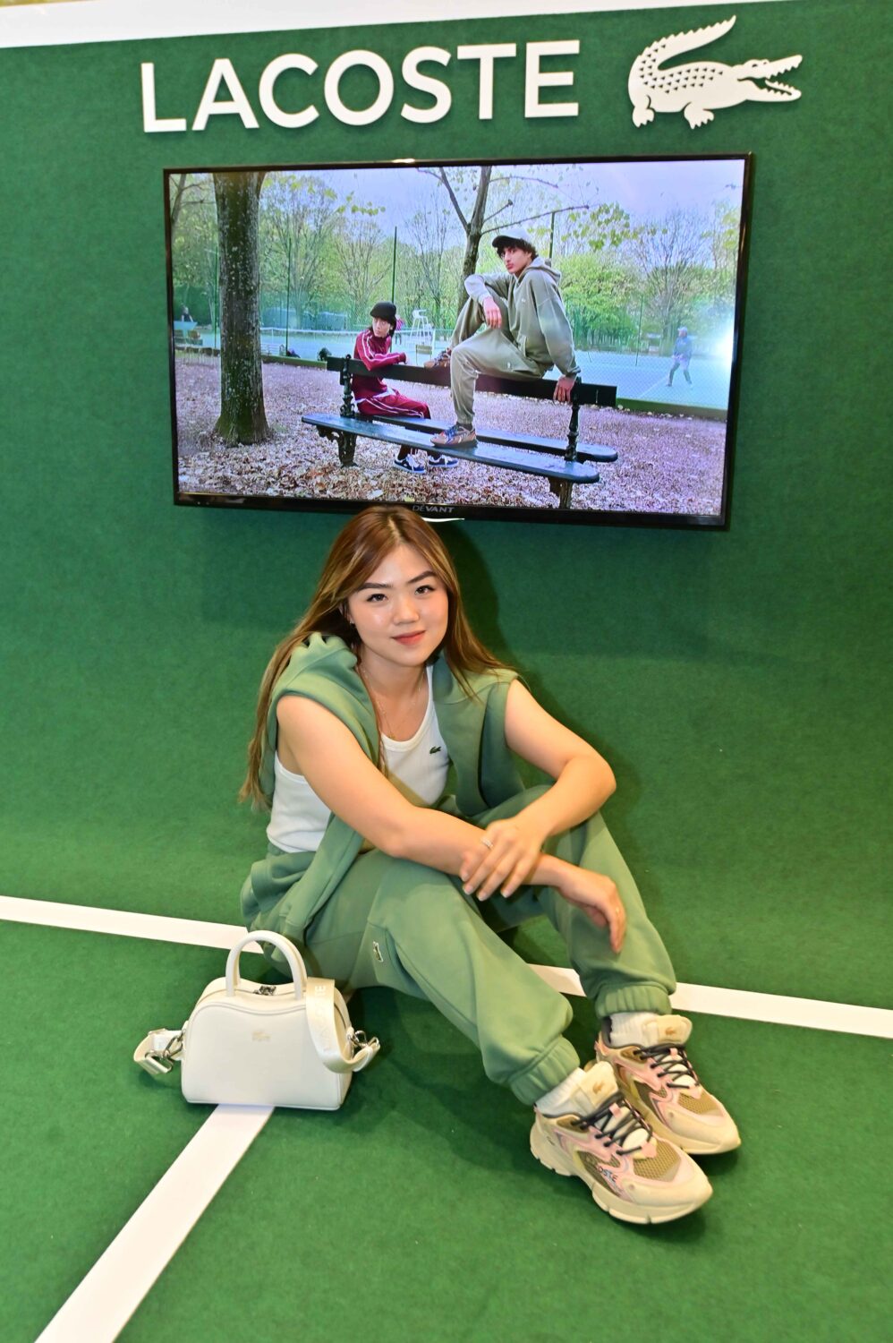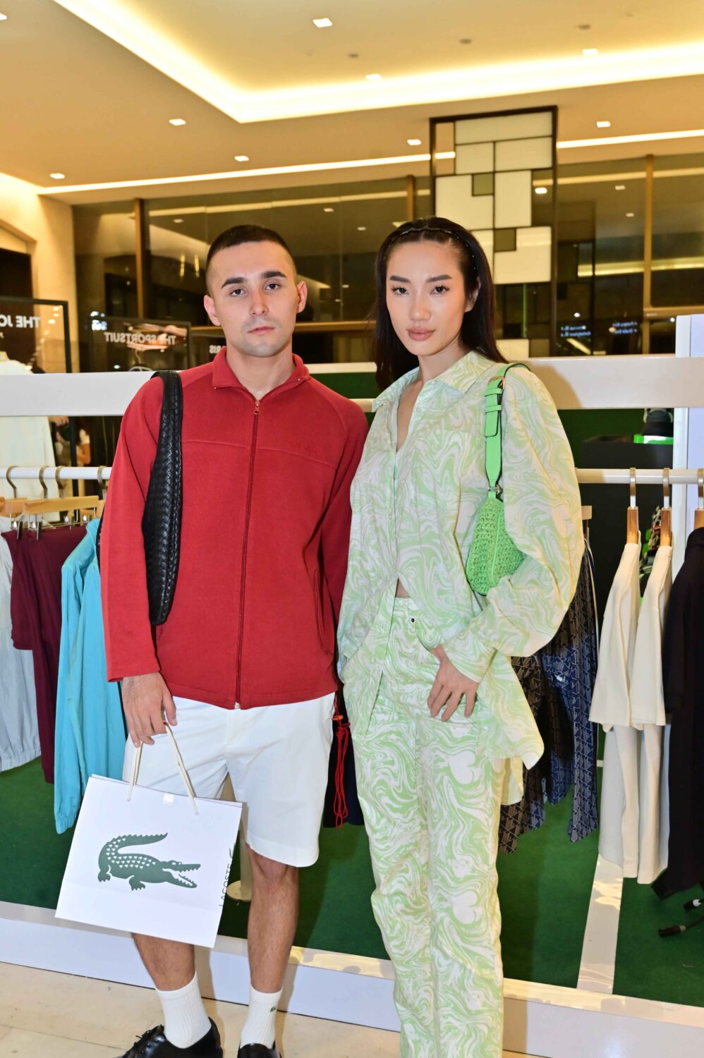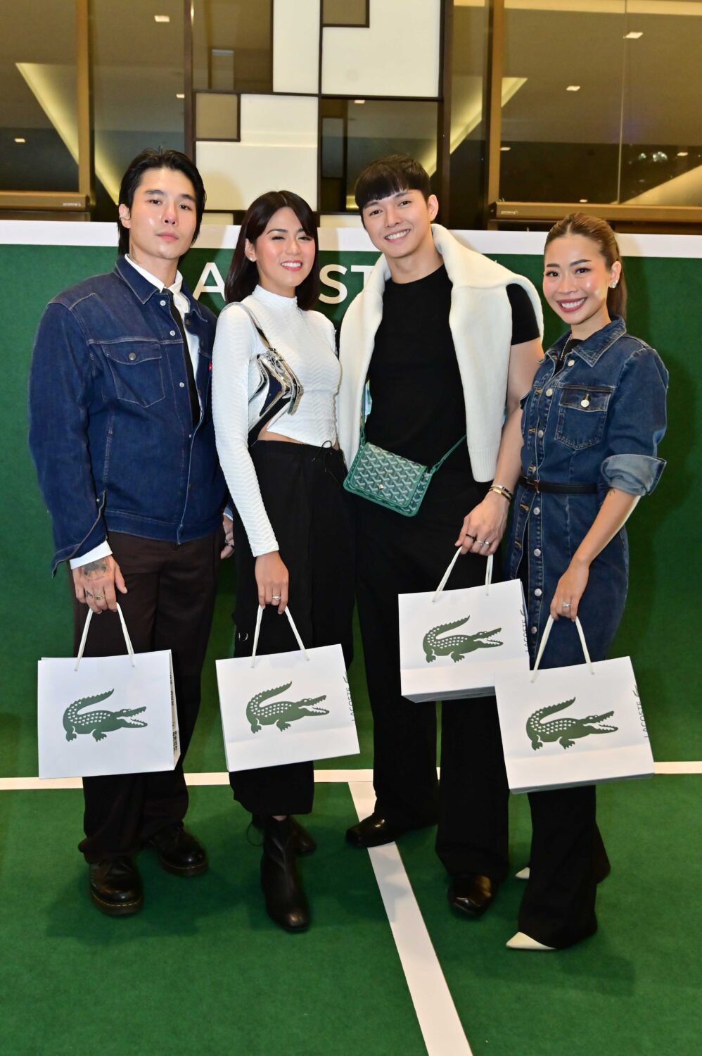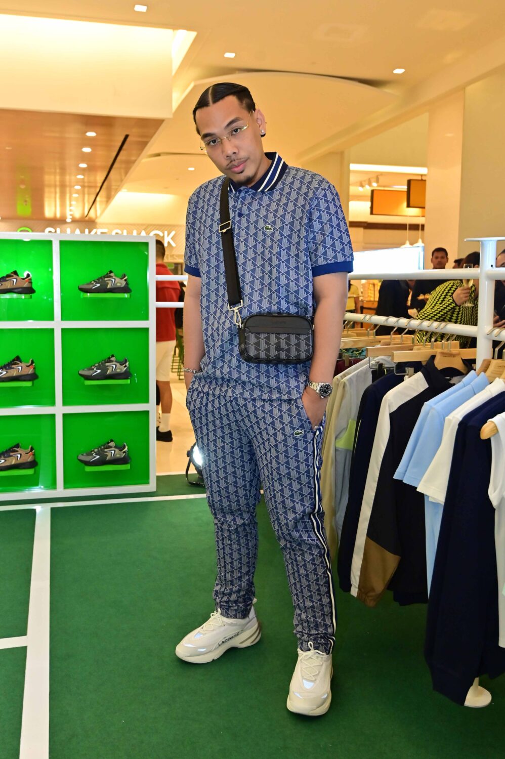 Gabs Gibbs in Lacoste sweater and skirt Al James in Lacoste monogram polo and Paris tracksuit trousers Jeanette Ong in Lacoste Jogger Tracksuit Jeff Ong, Arianne Bautista, Lharby Policarpio, and Rhea Bue Ong Liam Labrooy and Jessica Yang Al James and Gabs Gibbs (standing), Alliana Dolina, and Jeanette Ong wearing Lacoste
