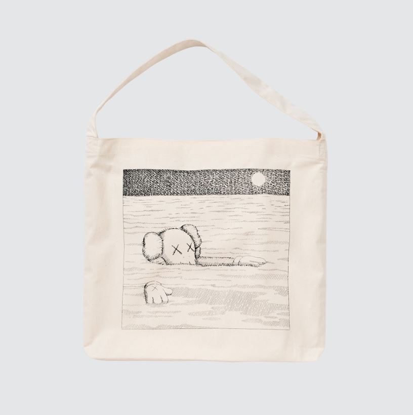 Customers who purchase the art book from this collaborative collection will receive a complimentary shoulder bag, available while supplies last. The bag showcases the book’s cover on the front and boasts KAWS’ iconic XX motif embroidered on the back.