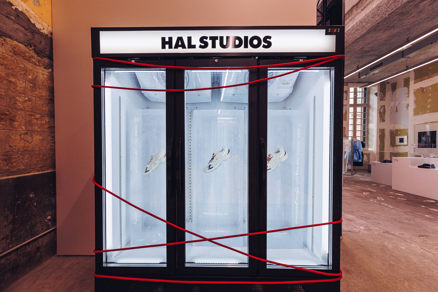 Following through with their glacial theme, the HAL STUDIOS® installation showcased the collaborative sneakers encased in blocks of ice, housed in industrial freezers. This “cool” theme draws inspiration from the principles of readymade art, and appreciating it from a distance.