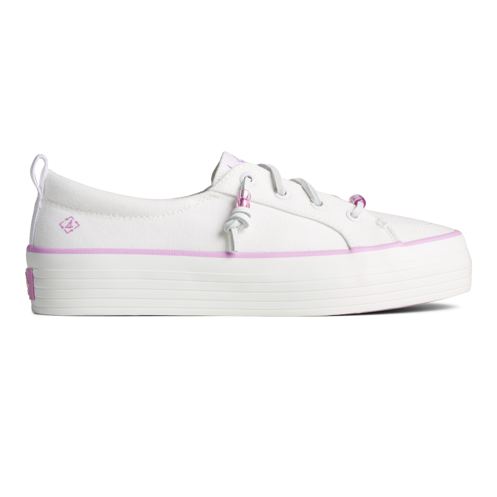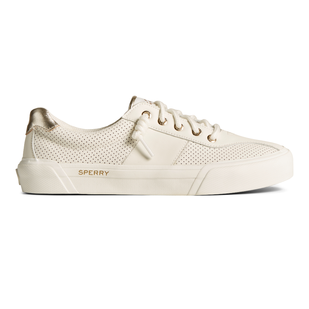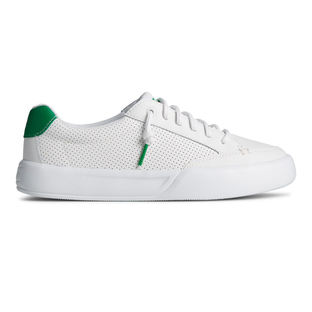 The Sperry Plushstep Pop in White/Jolly Green (P4995), Sperry Crest Vibe Platform with Beads in White (P4295), Sperry Soletide Racy in Metallic/White (P4995). Images courtesy of Merrell, Keds, and Sperry