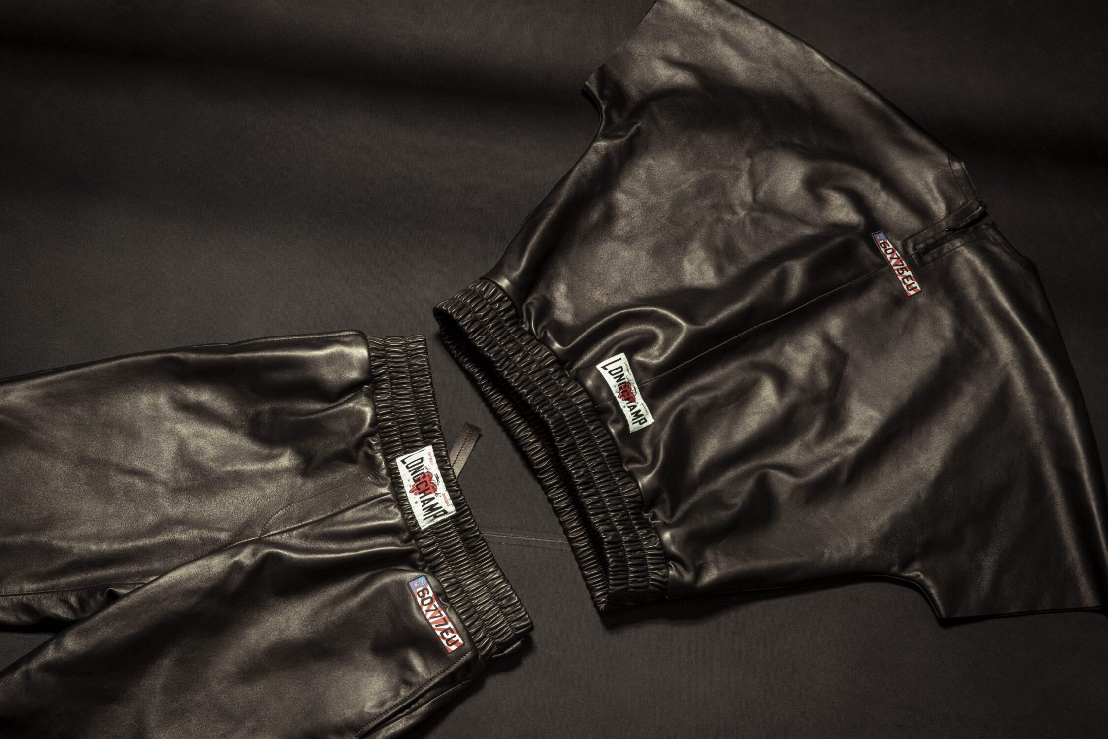 The collaboration also extends to a capsule of ready-to-wear featuring – alongside the athleisure staples of a grey-marl hoodie, black sweatshirt and black and white tees printed with the “Been a CHAMP” or boxing logo designs – two unisex pieces borrowed from the boxing ring: black satin shorts and a matching kimono with a white tie belt. Labels on the shorts spotlight the collaboration’s key signatures, while the kimono is decorated with Longchamp racehorse and EU heart pins. Last but by no means least, a short-sleeved crew and drawstring pants in butter-soft black lambskin combine Longchamp’s leather goods heritage with EU’s contemporary fashion vision.