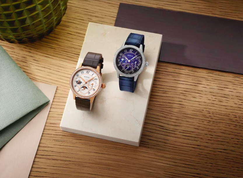Launching in a limited edition of just 88 pieces the Montblanc Bohème Perpetual Calendar Limited Edition 88 is a feminine interpretation of the codes of fine watchmaking. The timepiece shimmers like a starry night sky with a new Aventurine glass dial and a bezel set with diamonds. Aventurine comes from “adventure” and “chance” and was first produced in Murano, Venice in the 15th century. It was invented by the Italian glassmakers of the day who blended tiny particles of copper into batches of molten glass, resulting in this deep blue sparkling glass. It is also referred to as “astralite” in reference to its starry sky aesthetic that fascinates and inspires all those who set eyes upon it.