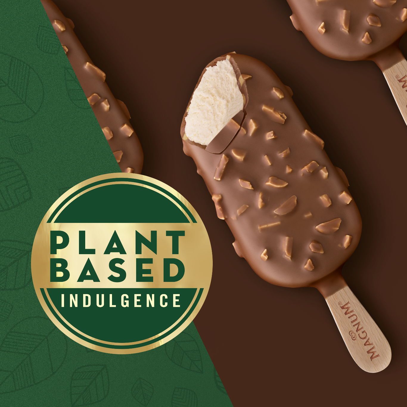 Its velvety vanilla ice confection is made with pea protein as a dairy substitute, covered in thick, cracking vegan Belgian chocolate, and topped with roasted almond pieces. Certified vegan by the Vegan Awareness Foundation, Magnum Dairy Free Almond ice confection gives the same indulgent taste as the classic Magnum bar without the dairy.