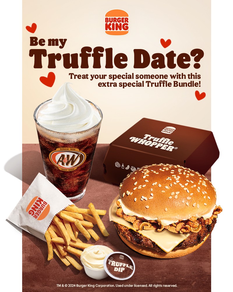 Elevate your dining experience from anywhere with the indulgent Truffle Whopper and the Truffle Trio bundle, now available at Burger King stores nationwide (while supplies last). Delight in the rich, earthy aroma and exquisite taste of truffle, perfectly complementing Burger King’s signature flame-grilled beef patty and fresh toppings.