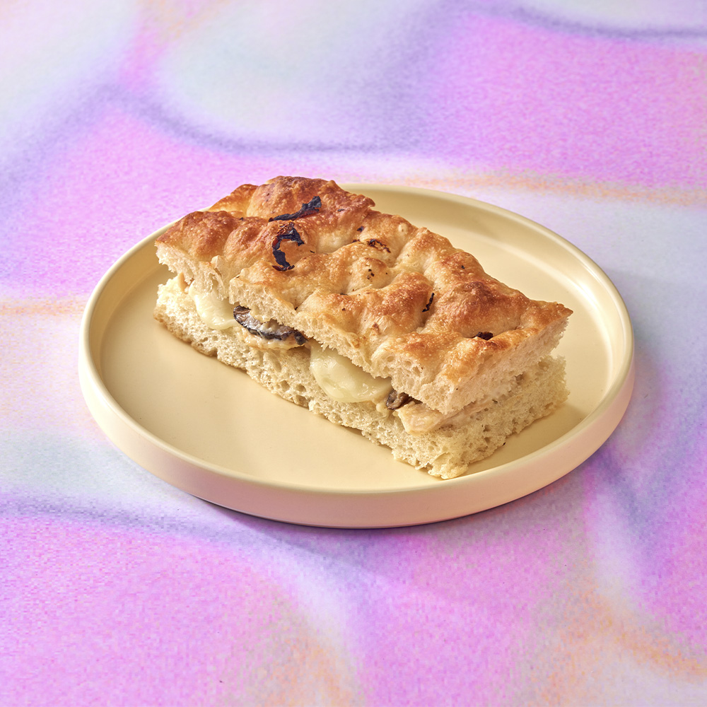 Roasted Chicken Caesar Parmesan Cheese and Sun-Dried Tomatoes on Focaccia Smoked Bacon and Mushroom Bake
