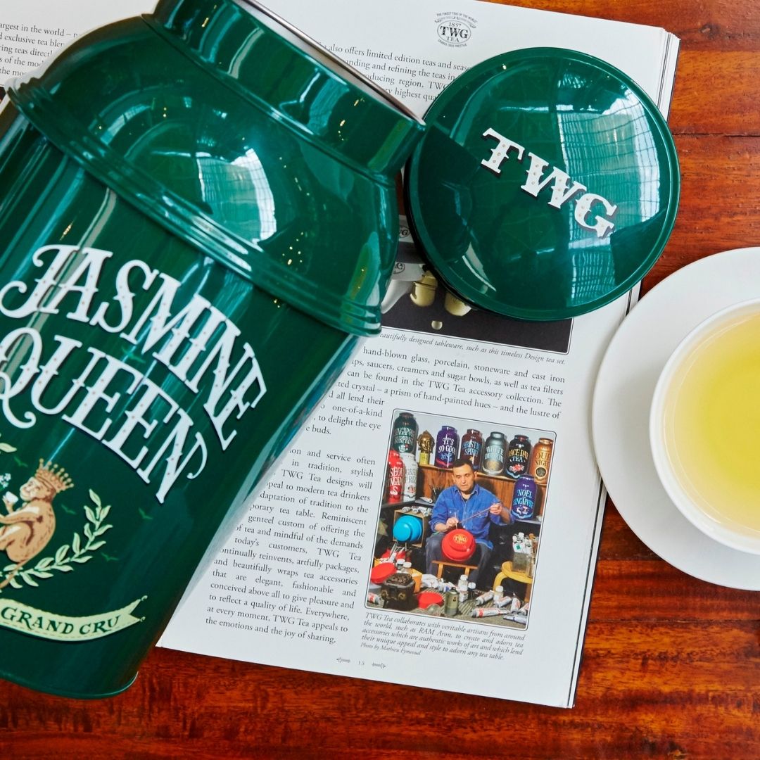 Jasmine Queen Tea in Cotton Teabag, P1,355. Jasmine Queen Tea in Loose Leaf Tea, P595 per 50g. Geisha Blossom Tea in Haute Couture Tea Collection, P1,895. Bain de Roses Tea Scented Candle, P3,895. Design Orchid Teapot, P6,895. TWG Tea Scoop in Silver, P895. Available at TWG Tea Boutiques in the Philippines. A limited selection of our finest teas and accessories is also available on our LazMall Flagship Store.