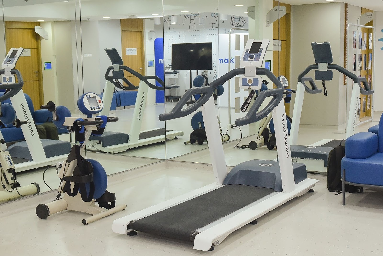 (L-R) A Maxicare Clinic consultation room with diagnostic equipment for eye and general examinations; A rehabilitation area featuring cardio and therapy equipment designed to support recovery and preventive care. Images courtesy of Maxicare Philippines.