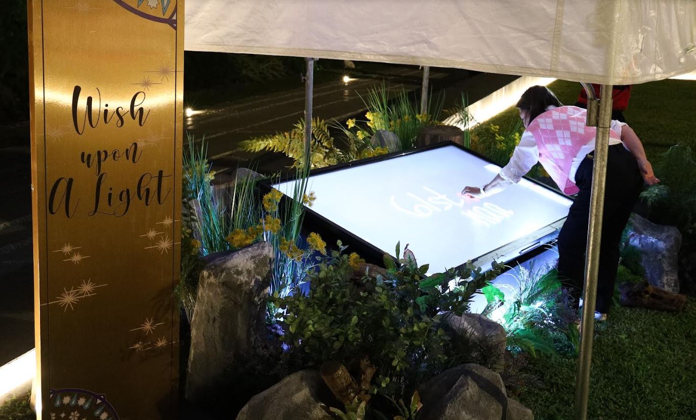 Embark on a magical journey at Ayala Triangle Gardens and discover “Wish Upon a Light” at the northern portion—a wishing pond where you can share your wishes on an interactive screen, flashing them on a green wall for everyone to see.