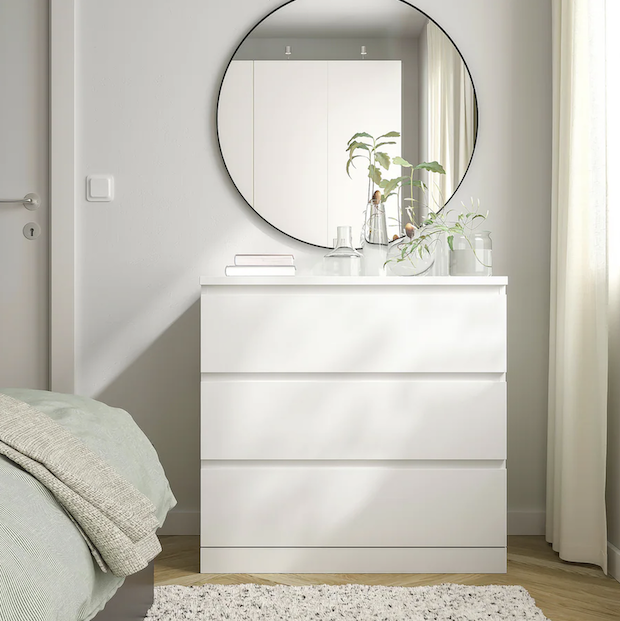 For a simple, streamlined design, the MALM bedroom series is full of smart ideas, like bed frames with under the bed storage and a chest of drawers that works as a bedside table, too. There’s a choice of wood veneer and white finishes to help you find your favorite.