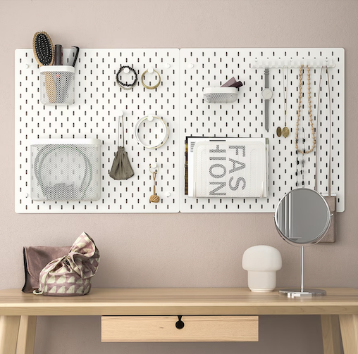 SKÅDIS is an extremely versatile pegboard that you can rearrange endless times. Add containers, shelves, letter holders, and elastics and keep your things organized and tidily gathered where you can always find them. In your kitchen, hallway, study or bathroom, it’s perfect for keeping things handy.