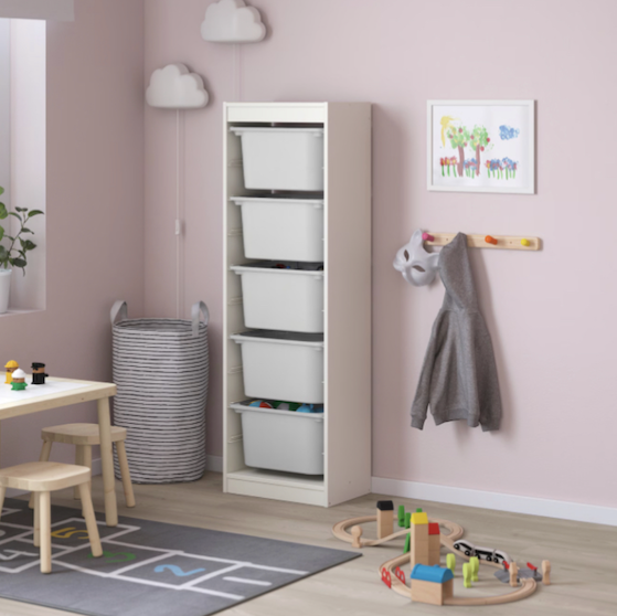 Having kids with a knack for toys of all shapes and sizes can really challenge your skill of finding a place for everything. This is where the colorful and versatile TROFAST toy storage solutions come in. By integrating different sturdy frames and removable boxes together, you can make your own storage solution and eliminate the toll of a cleanup frenzy after every playtime. A spacious playroom will lay more space for great bonding moments, too!