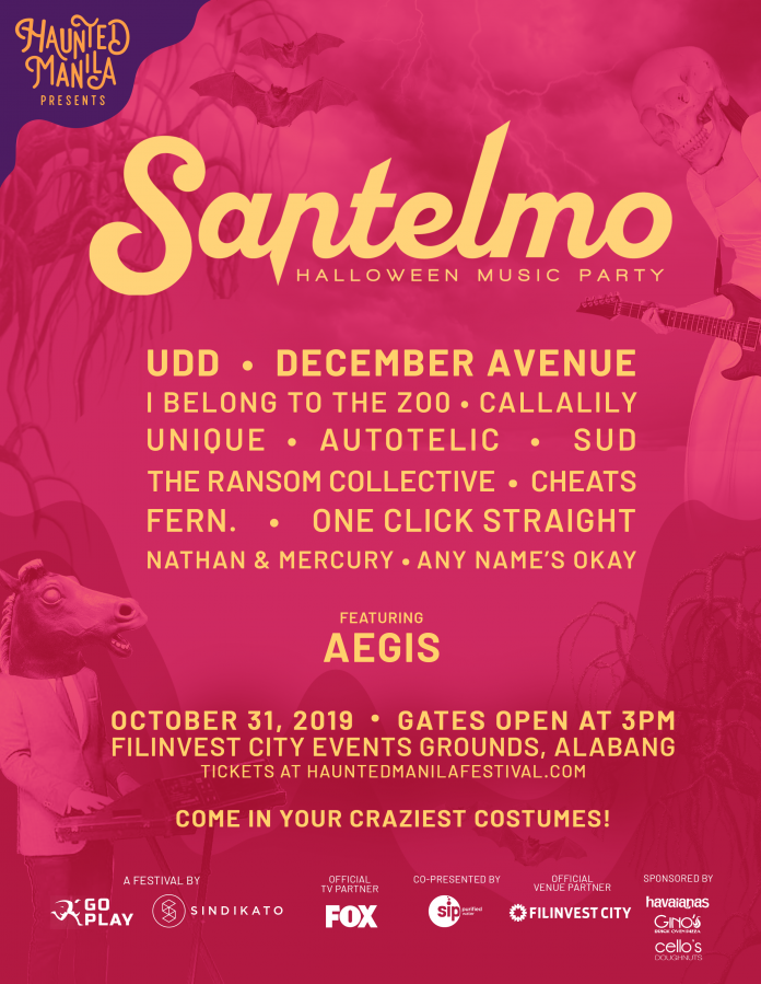 Six days of Halloween activities won’t be enough if you don’t stay and enjoy the Santelmo Halloween Music Fest on October 31. #HMF2019 has gathered our most favorite OPM bands to make enough music and noise to raise the living dead! Sit back, relax (not too much), and enjoy UDD, December Avenue, I Belong to the Zoo, Callalily, Unique, Autotelic, SUD, The Ransom Collective, Cheat, FERN, One Click Straight, Nathan &Mercury, Any Name’s Okay, and Aegis!