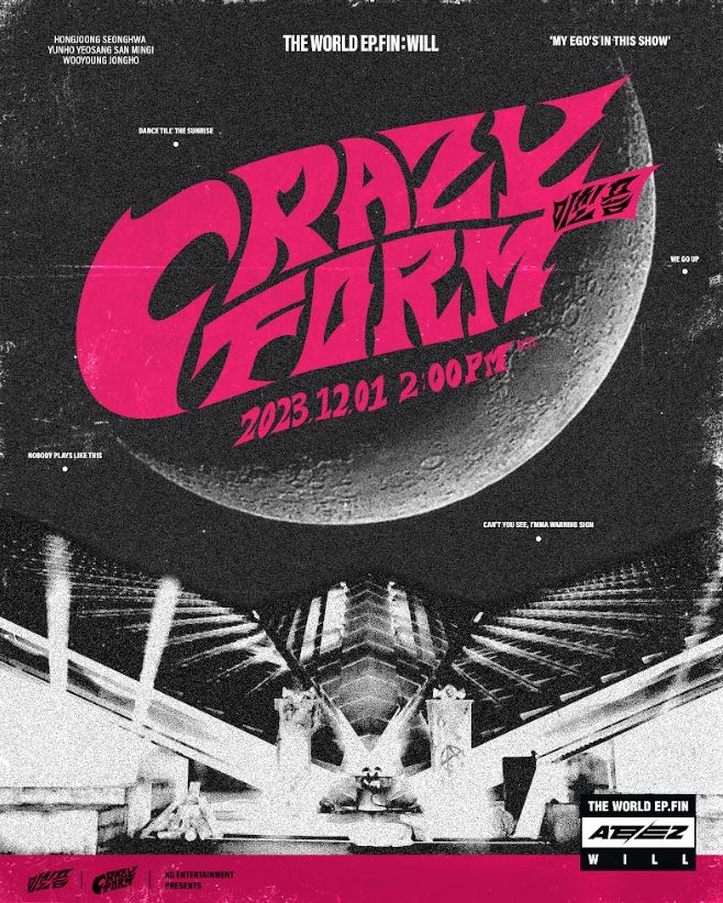 The title track, “Crazy Form,” delves into the dancehall genre infused with an Afrobeat rhythm, introducing a fresh musical style for ATEEZ. It radiates a distinctive wit and irreplaceable charm that defines the group, marking the beginning of a new musical chapter characterized by the perfect synergy between an addictive melody and powerful choreography.