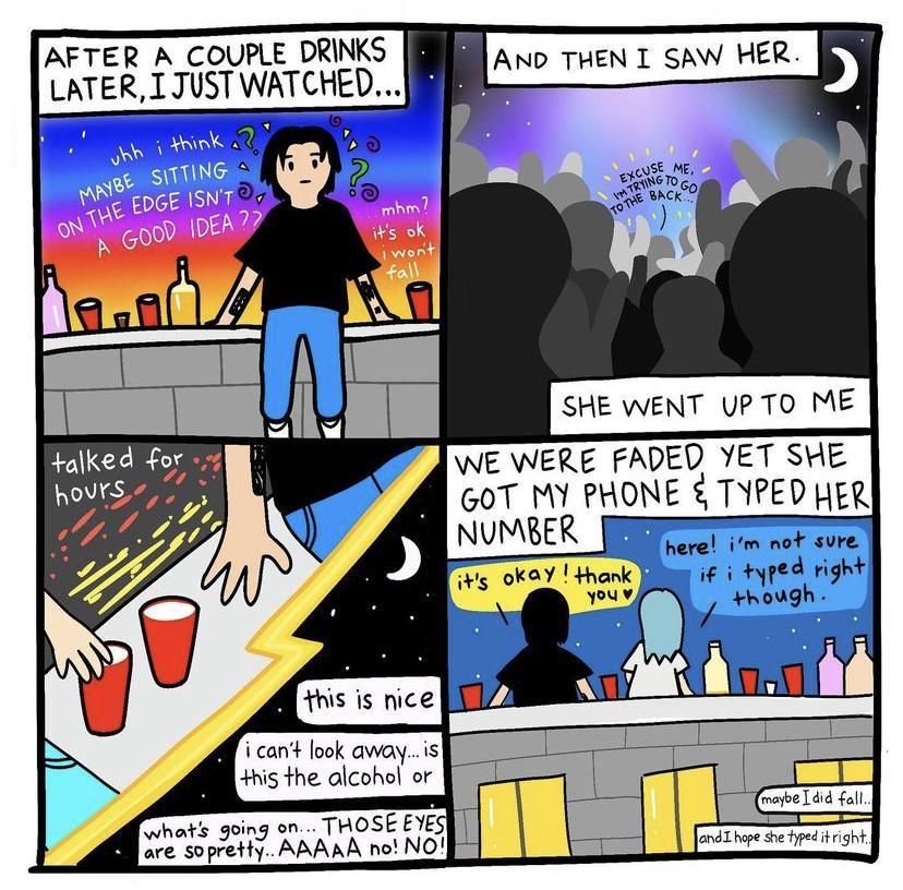 rienne released a comic (also drawn by them!) along with the “honey” lyric video, showing the events that led to their dreamlike night out. Read “honey: the comics” by rienne here.