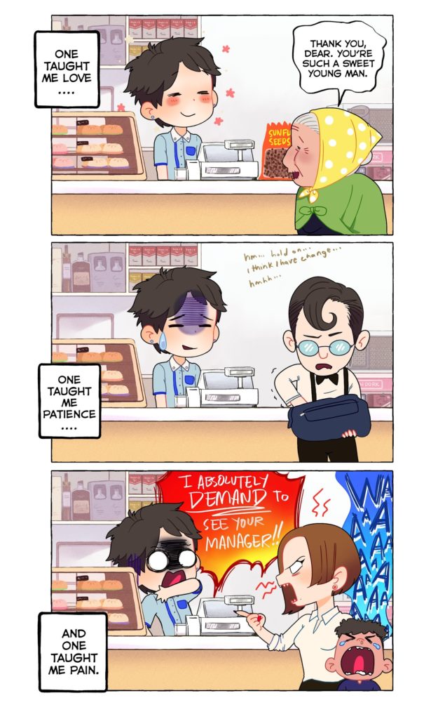 The Convenience Store is a series inspired by Lim’s experiences working in retail. “I thought a convenience store location would be funny and relatable. I was surprised by the things I saw and experienced while on the other side of the customer service experience.”