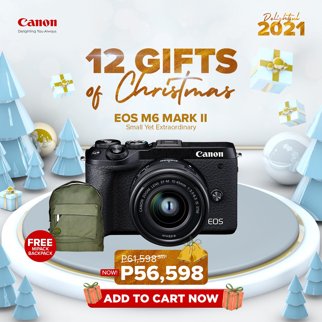 From Php 61,598, EOS M6 Mark II camera is now marked down to Php 56,598. This model has 4K video camera (Uncropped/Cropped) features 2.5MP APS-C CMOS Sensor + DIGIC 8, Dual Pixel CMOS AF, 30fps RAW burst mode (One -Shot & Servo AF), 5,481 selectable focus positions, and Eye Detection AF (One-Shot & Servo AF).