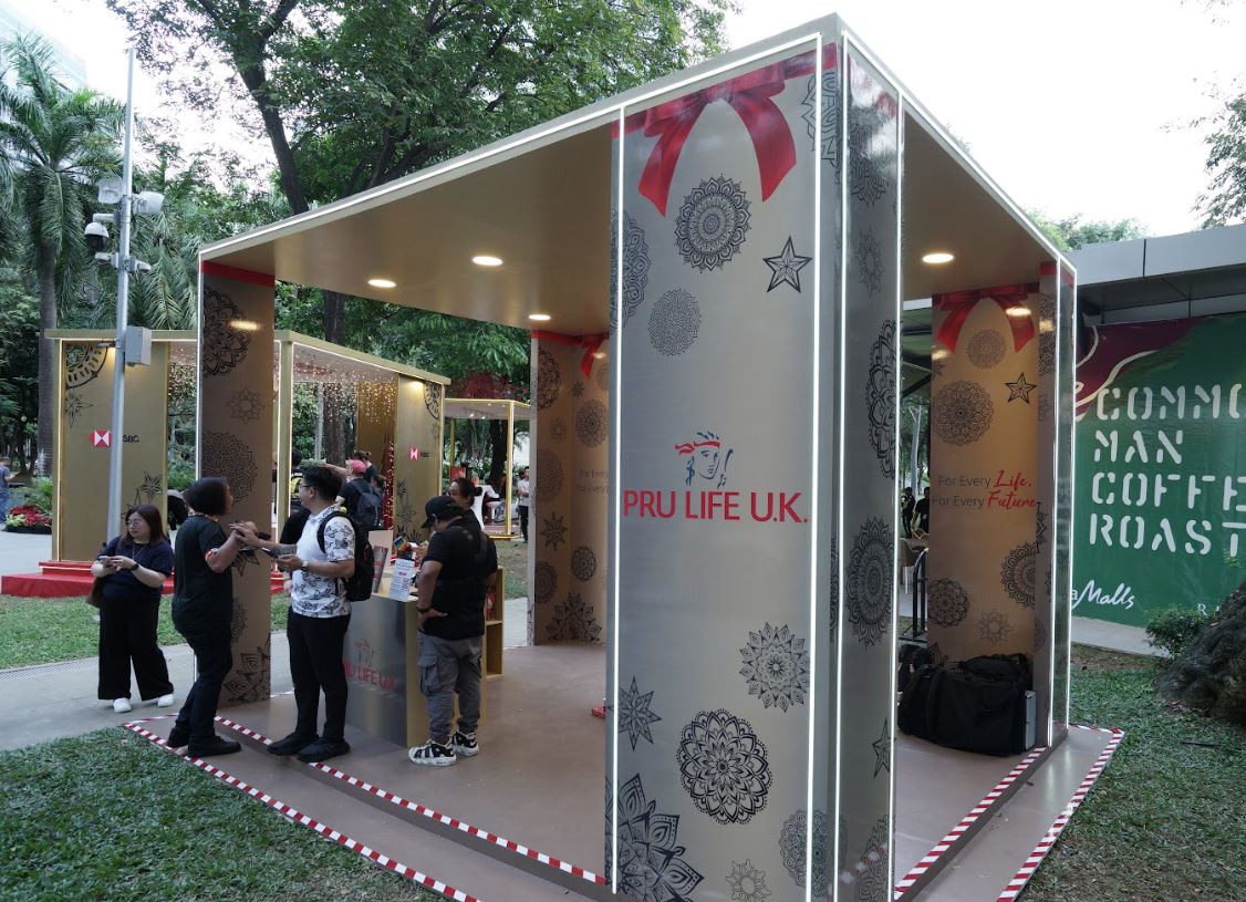 Elevating the holiday spirit, Pru Life UK presents an interactive booth with festive games like Candy Cane Drop and Unbox PRU Love, offering participants a chance to win exciting prizes and merchandise.