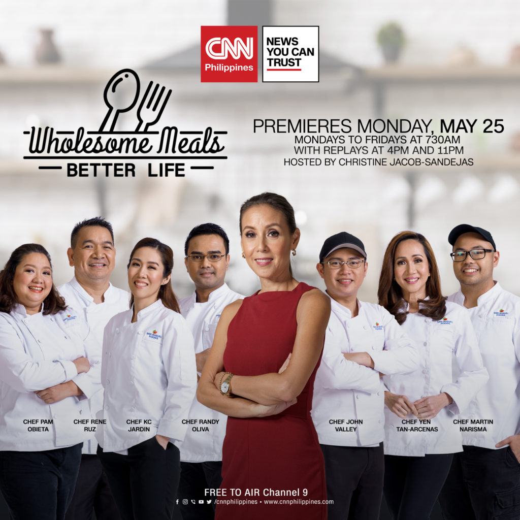 Wholesome Meals Better Life airs Mondays to Fridays beginning May 25 at 7:30AM on CNN Philippines. Catch the replays daily at 4PM and 11PM. You may also log on to youtube.com/CNNPhilippines to view the episodes. Visit facebook.com/CNNPhilippines to also get the recipes featured in the show.