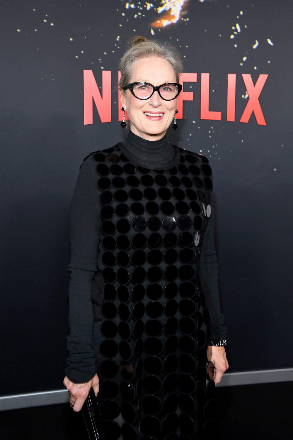 Meryl Streep as President Janie Orlean. Image courtesy of Getty for Netflix.