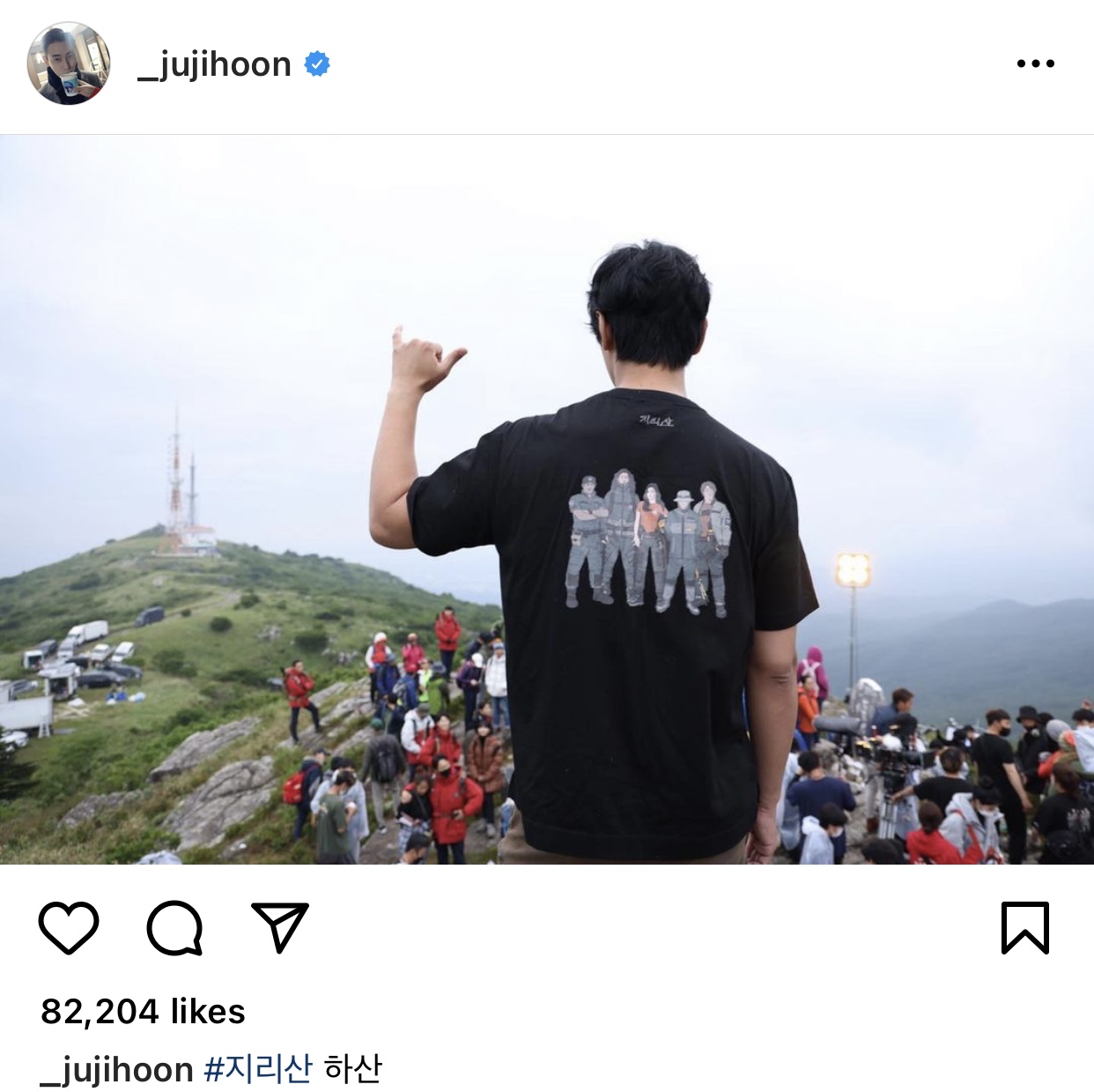 In the series, Ju Ji-hoon and Jun Ji-hyun play national park rangers protecting the people around Mt. Jirisan until they unveil mysteries and unknown secrets surrounding the park.  The cast also includes Sung Dong-il and Oh Jung-se. Ju Ji-hoon’s recent IG post signals the last phase of filming – “Climbing down from Jirisan” as caption with a photo of him wearing a black shirt with the cast of the series printed at the back of his shirt.