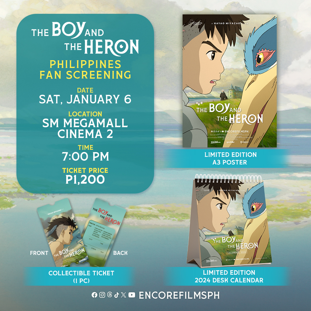 MANILA, Philippines—Excitement awaits Studio Ghibli fans as Encore Films (Ph) and Warner Bros. present The Boy and The Heron in both its original Japanese and English-dubbed versions at cinemas nationwide from January 8.
