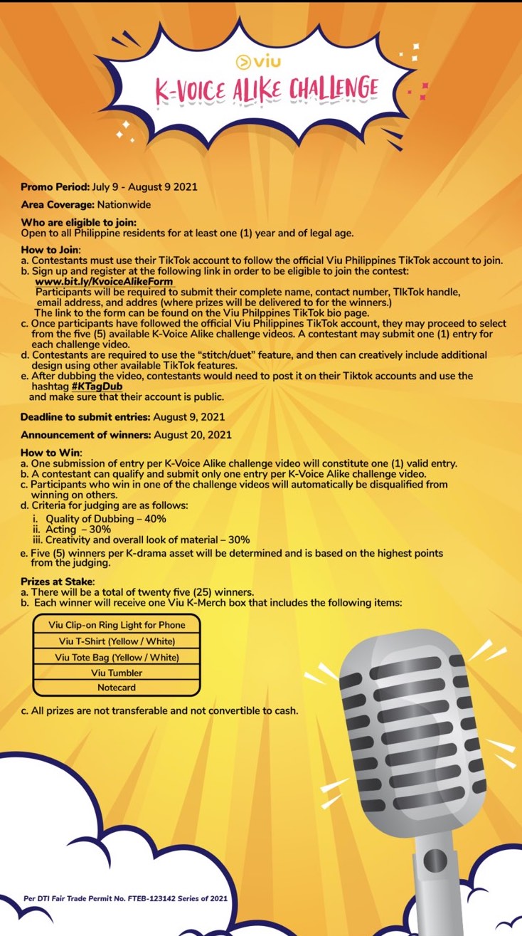 It’s KKK-surprises for all K-Drama fans! Share your KKK-Tag Dub reaction videos and join the K-Voice Alike Search to show your love for Tagalog-dubbed K-Dramas and win exciting prizes. The most impressive TikTok videos will get a surprise K-Merch Box from Viu. Simply visit the official Viu Philippines TikTok page (@viuphilippines), use the duet video from the feed, tag @viuphilippines and 3 of your friends, and use the hashtags #KTagDub and #ViuKVoiceAlike.