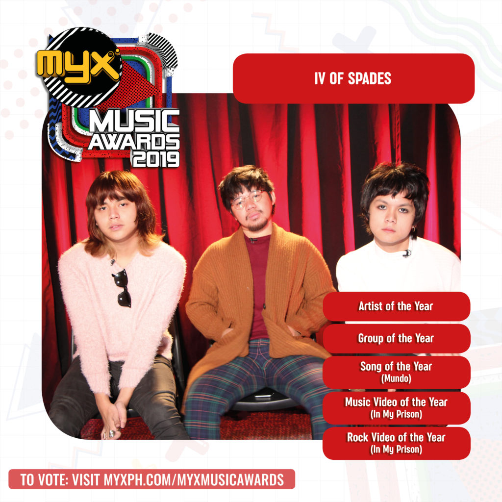 After winning New Artist of the Year in the MYX Music Awards, IV of Spades got five nominations including Group of the Year, Artist of the Year, and Song of the Year for chart-topping track “Mundo”. The band also got nods for Rock Video of the Year and Music Video of the Year for “In My Prison”.