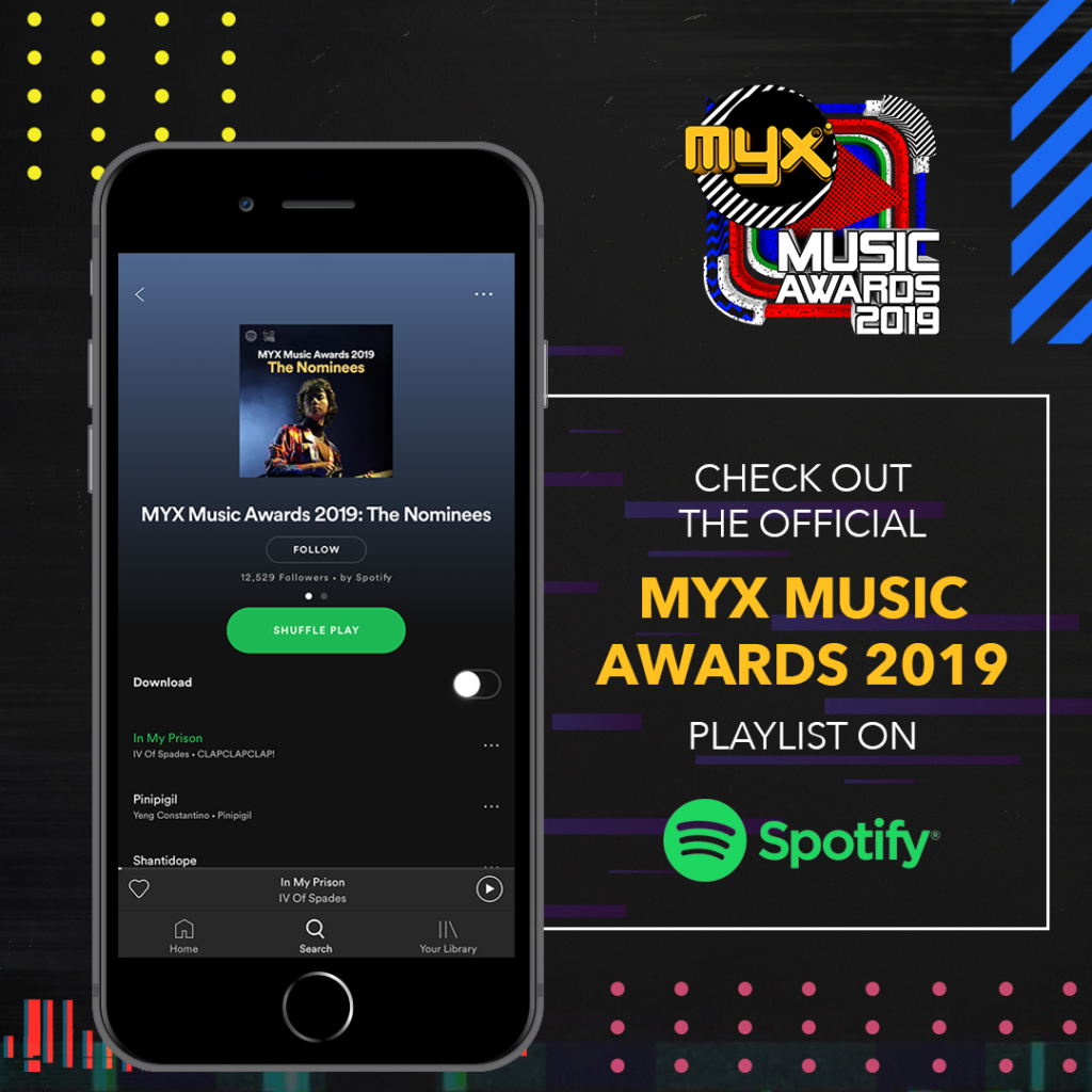 Check out the #MYXMusicAwards2019 nominees playlist on Spotify and vote for your favorite nominees until May 12 by logging on to www.myxph.com.